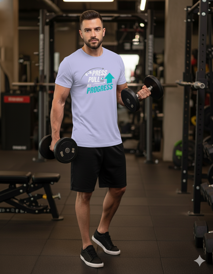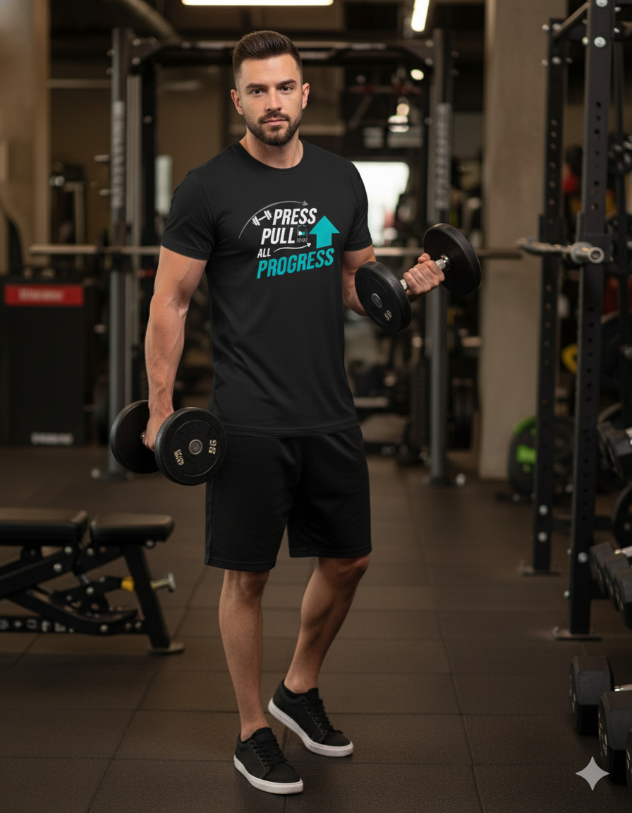 Push your limits and redefine strength with the “Press, Pull, Progress” Gym Tee — made for those who believe that every rep counts! 💪