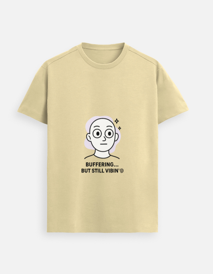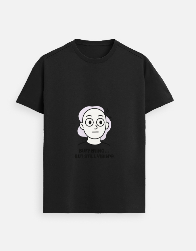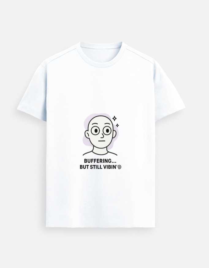 Stay chill and stylish with our Buffering But Vibin’ T-Shirt. Featuring a quirky face graphic and the fun quote “Buffering… But Still Vibin’,” this tee is made for those who take life easy and vibe through every moment.