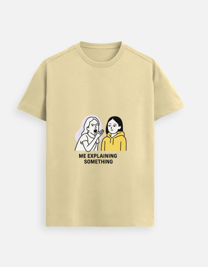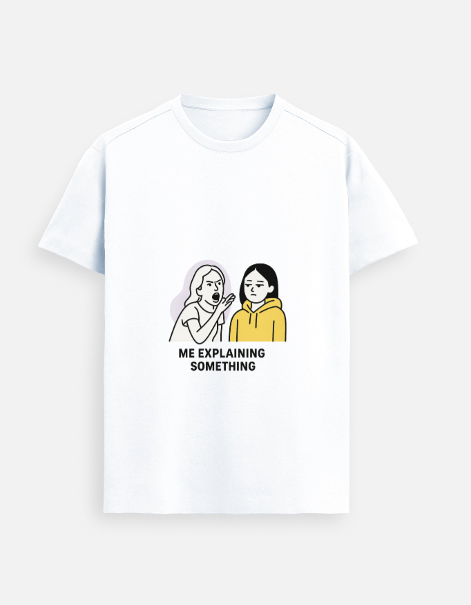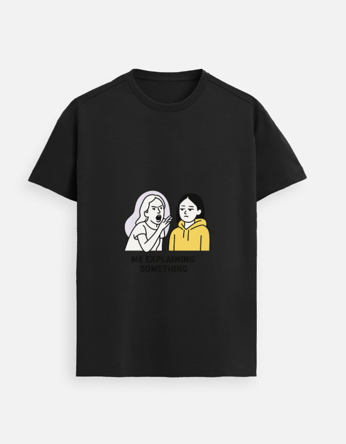 ⚡ When words fail, memes speak louder! ⚡ Step into the ultimate GenZ mood with this “Me Explaining Something” oversized tee – funny, relatable & effortlessly stylish.